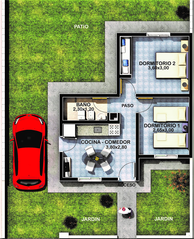 - VARIANTE: a opción del adjudicatario podrá usarse el dormitorio del frente cómo comedor